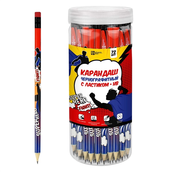 КАРАНДАШ Ч/Г С ЛАСТ ФЕНИКС+ HB СУПЕРГЕРОЙ АРТ.57942