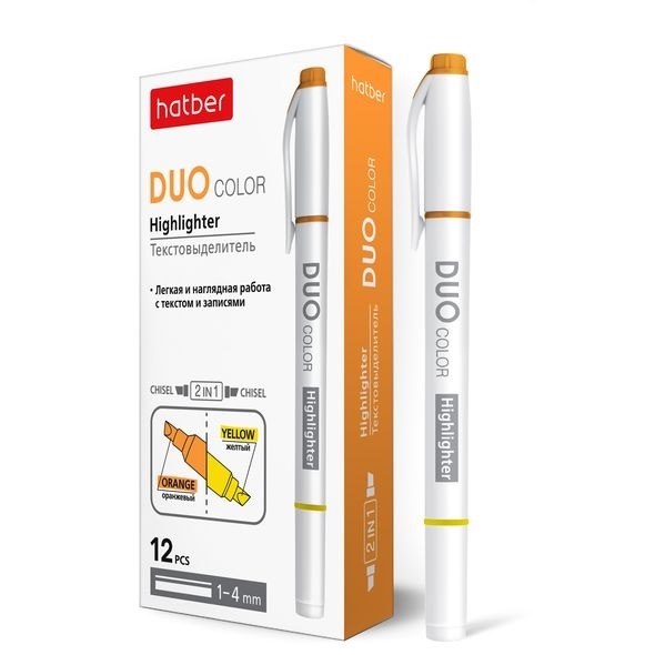 МАРКЕР ТЕКСТОВ HATBER DUO ДВУХЦВЕТ ОРАНЖ/ЖЕЛТ HL_059577