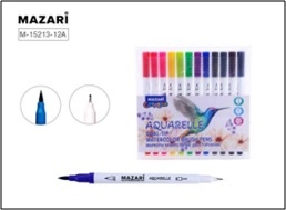 НАБОР МАРКЕРОВ АКВАРЕЛЬНЫХ ДВУСТОРОН (КИСТЬ+ЛИНЕР) 12ЦВ AQUARELLE MAZARI M-15213-12A (4164)