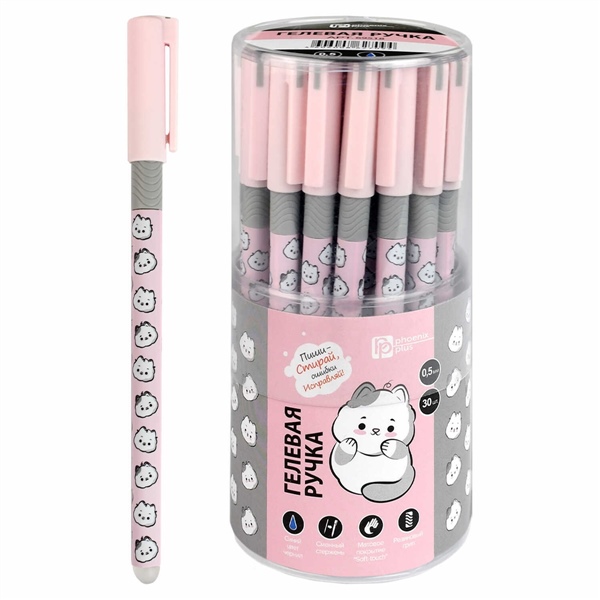 РУЧКА ПИШИ-СТИРАЙ ГЕЛ СИН 0,5 ММ КОТИКИ НА РОЗОВОМ ФЕНИКС+ В АСС 69518