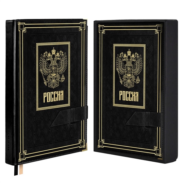 Ежедневник полудатированный ESCALADA, А5+, 192 л., арт. 63935/ 10 САРИФ ЧЁРНЫЙ (кожзам: 175x245 мм, твёрдый переплёт с поролоном, материал обложки: искусственная кожа "Сариф"; способ крепления блока: ниткошвейный; декор: блинтовое тиснение, металлические уголки, тиснение фольгой; вн. блок: 192 л., кремовый офсет 80 г/м², печать в две краски (линия), справочный материал: есть; перфорация углов блока: нет; отделка среза: фольгирование; закладка/-и: два ляссе, каптал: есть; форзац: печать пантоном, особенности: застёжка "хляст в петле"; персонализация возможна: нет; индивидуальная упаковка: подарочная картонная коробка с ПВХ-крышкой + ПЭТ-пакет)
