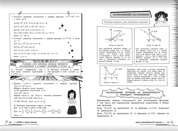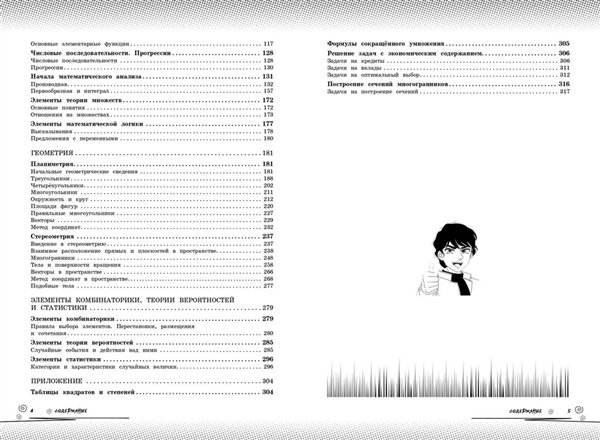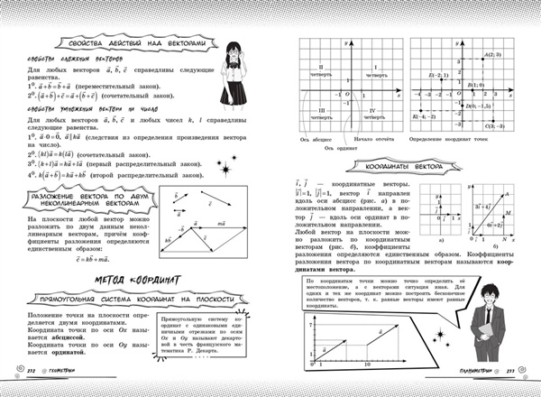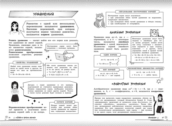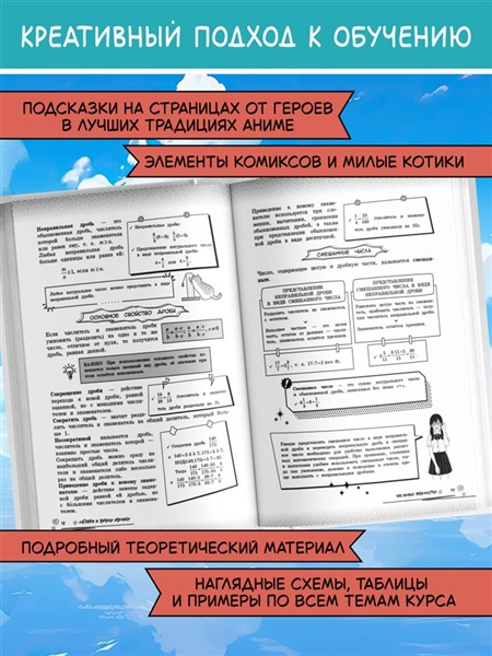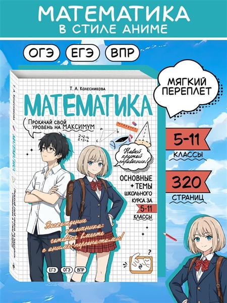 Справочник по математике в аниме-стиле — это современное учебное пособие для учащихся 5—11 классов, которое объединяет школьные знания и визуальную эстетику аниме-культуры. Вместо сухих определений и скучных параграфов на страницах книг вас будут ждать милые и смешные аниме-персонажи, чьи подсказки помогут разобрать материал любой сложности в более живом и увлекательном формате, подготовиться к урокам или предстоящим экзаменам. Более того, вся теория дополнительно сопровождается удобными схемами, забавными рисунками и наглядными примерами. Такой креативный визуальный подход к обучению обеспечивает лёгкость восприятия и эффективность запоминания информации. Прокачай свой уровень на максимум и пройди весь школьный курс вместе с героями в стиле аниме! Пособие предназначено для школьников и учителей, для любителей аниме и манги, а также для всех, кто интересуется вопросами математики.