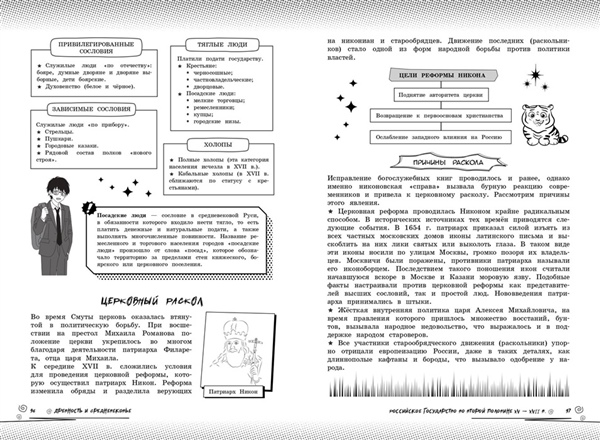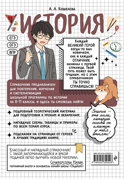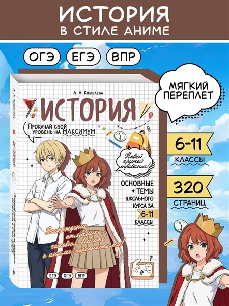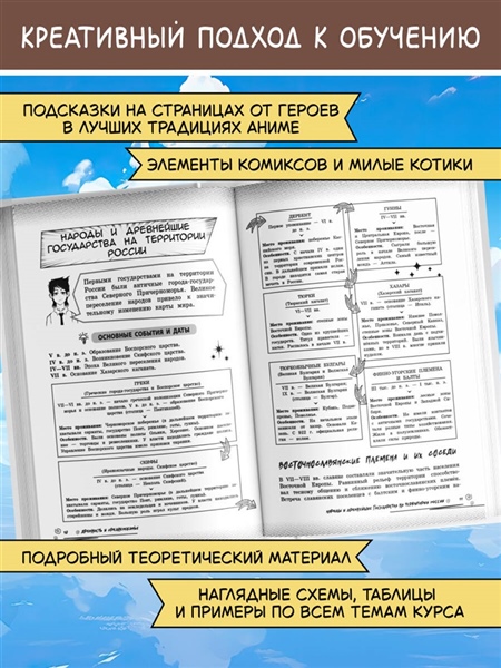 Справочник по истории в аниме-стиле — это современное учебное пособие для учащихся 6—11 классов, которое объединяет школьные знания и визуальную эстетику аниме-культуры. Вместо сухих определений и скучных параграфов на страницах книг вас будут ждать милые и смешные аниме-персонажи, чьи подсказки помогут разобрать материал любой сложности в более живом и увлекательном формате, подготовиться к урокам или предстоящим экзаменам. Более того, вся теория дополнительно сопровождается удобными схемами, забавными рисунками и наглядными примерами. Такой креативный визуальный подход к обучению обеспечивает лёгкость восприятия и эффективность запоминания информации. Прокачай свой уровень на максимум и пройди весь школьный курс вместе с героями в стиле аниме! Пособие предназначено для школьников и учителей, для любителей аниме и манги, а также для всех, кто интересуется вопросами истории.