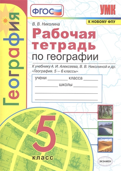 Рабочая тетрадь УМК. Р/Т ПО ГЕОГРАФИИ 5 КЛ. АЛЕКСЕЕВ, НИКОЛИНА. ФГОС (к новому ФПУ)