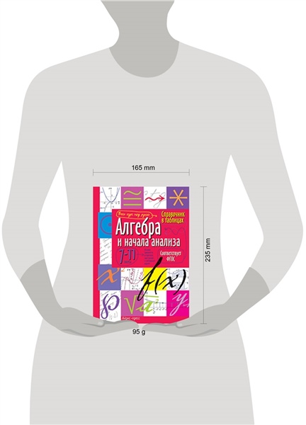Справочник содержит весь курс алгебры и начала анализа для школьников. Материал представлен в виде таблиц, каждая таблица на отдельной странице. Благодаря такой наглядной подаче усвоить тему будет легко при любом уровне подготовленности. Быстро ориентироваться в пособии поможет удобная поисковая система. Клапаны книги могут быть использованы для записи самых необходимых формул, для заметок во время занятий и как закладки. Справочник всегда должен быть под рукой у старшеклассников и абитуриентов для успешной подготовки к экзаменам.