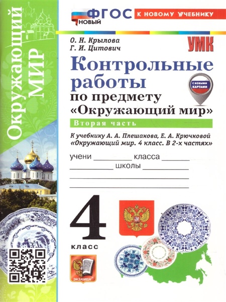 Крылова О.Н., Цитович Г.И. УМКн. КОНТРОЛЬНЫЕ РАБОТЫ ПО ПРЕДМ."ОКР.МИР" 4 КЛ. ПЛЕШАКОВ. Ч.2. ФГОС НОВЫЙ (к новому учебнику)