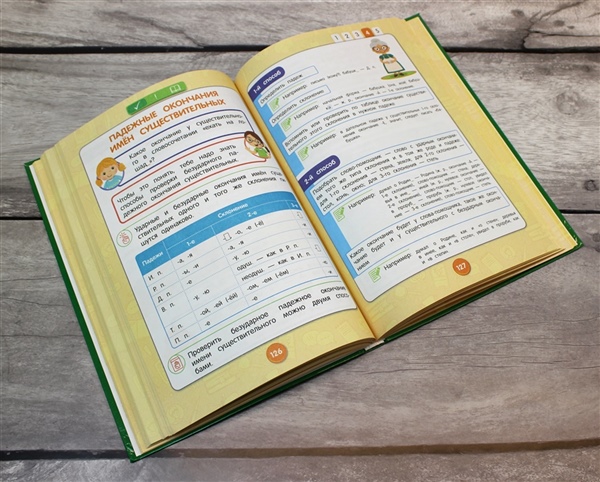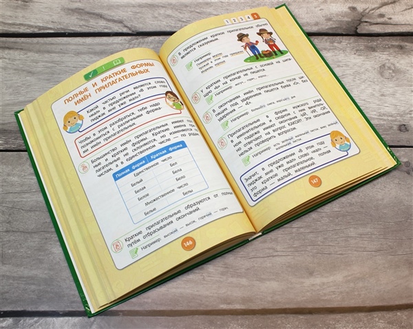 Пособие, соответствующее ФГОС, содержит основные правила и определения русского языка, изучаемые в начальной школе, а также в 5-м классе. Особенность этой книги — подача материала удобная и быстрая, как на планшете. Такая подача понятна детям, которые привыкли пользоваться современными гаджетами. Ещё одно новшество — материал более обширный, охватывает темы не только начальной школы, но и 5-го класса. Книга наглядна и удобна в использовании. Таблицы, схемы, диаграммы, карты памяти, разнообразные выделения, схематичные изображения и иллюстрации делают поиск и запоминание информации быстрыми и лёгкими.