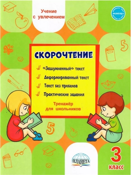 Скорочтение – это способность человека воспринимать текст с большой скоростью. Именно воспринимать, т.е. понимать текст, а не только механически прочитывать. Однако, современные дети медленно читают. И это одна из самых серьёзных проблем, с которой сталкиваются школьники и их родители. Это сказывается на успеваемости школьников, объёме усваиваемого материала на уроках, скорости выполнения домашних заданий. Медленное и неуверенное чтение текстовой информации приводит к тому, что на выполнение заданий по всем предметам тратится много времени, а это, в свою очередь, приводит к общему снижению показателей успеваемости.Как научить ребёнка быстро читать и при этом усваивать необходимый объём информации? Как сделать так, чтобы навык ребёнка быстро читать не превратился в механическое, неосмысленное повторение слов? Конечно, нужны специальные упражнения.В этой книге собраны необычные тексты-задания, работа с которыми поможет школьникам существенно увеличить скорость чтения. Основное назначение этих заданий – научить ребёнка при чтении «видеть» всё слово или предложение целиком, расширить у детей периферийное зрение, научить читать текст «про себя», развивать внимание. К каждому тексту даётся 2-3 вопроса на проверку осознанности чтения и практическое задание на закрепление приобретенных навыков. Работать дети могут самостоятельно дома или в школе.Тренажёр предназначен ученикам 3 классов, родителям, учителям начальной школы, методистам.