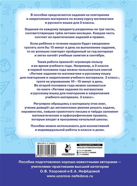 Если ребёнок в течение недели будет ежедневно тратить хотя бы 15 минут в день на выполнение задания, то он успешно повторит пройденный за год материал и легко начнёт учебные занятие в сентябре.