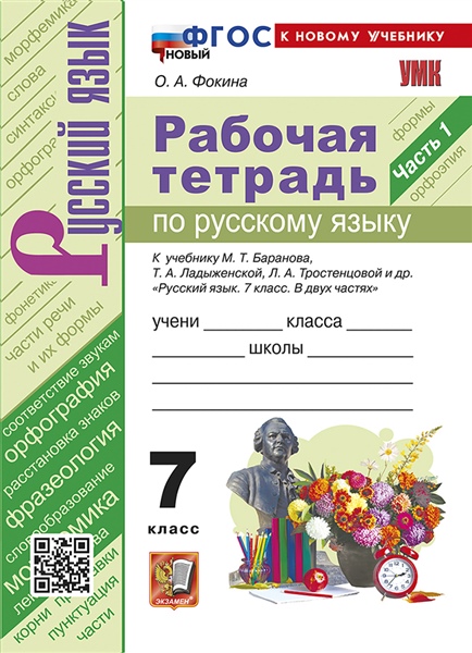Рабочая тетрадь Фокина О.А. УМК. Р/Т ПО РУС. ЯЗЫКУ 7 КЛ. БАРАНОВ. Ч.1. ФГОС НОВЫЙ (к новому учебнику)