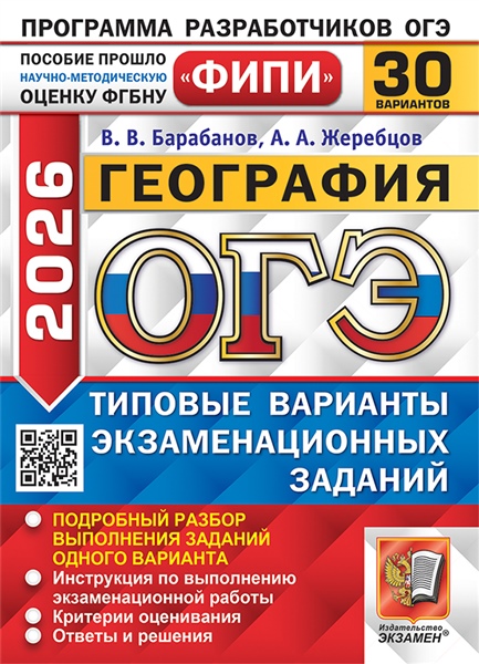 Барабанов В.В., Жеребцов А.А. ОГЭ ФИПИ 2026. 30 ТВЭЗ. ГЕОГРАФИЯ. 30 ВАРИАНТОВ. ТИПОВЫЕ ВАРИАНТЫ ЭКЗАМЕНАЦИОННЫХ ЗАДАНИЙ