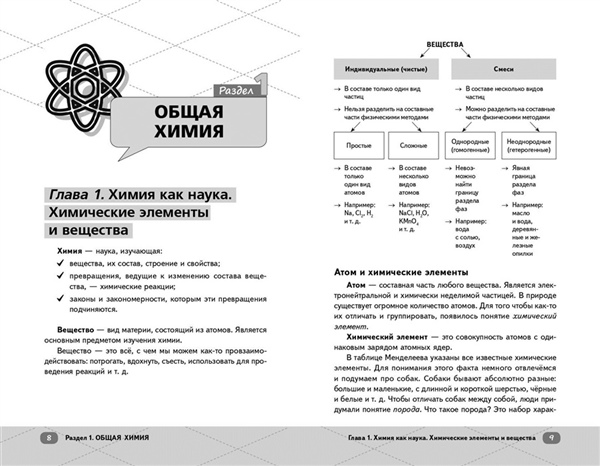 Эта книга разложит по полочкам все темы по предмету за 8—9 классы: вы сможете запросто повторить уже изученный материал, а также проработать не охваченные ранее вопросы. Информация по разделам «Общая химия», «Неорганическая химия» и «Химические задачи» преподносится наглядно и понятно, а также сопровождается примерами химических реакций. Вместе с теорией приводятся тренировочные задания с ответами и пояснениями. Так ни одна важная мысль не ускользнёт от вас во время занятий!