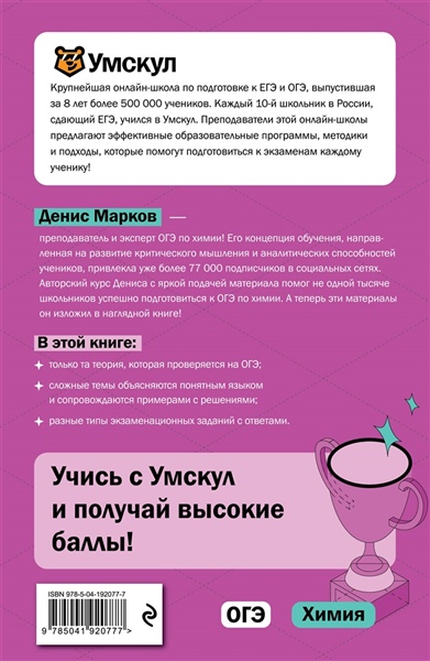 Автор пособия Денис Марков — преподаватель и эксперт ОГЭ по химии, развивающий критическое мышление и аналитические способности учеников! В социальных сетях за ним следят более 77 000 подписчиков!