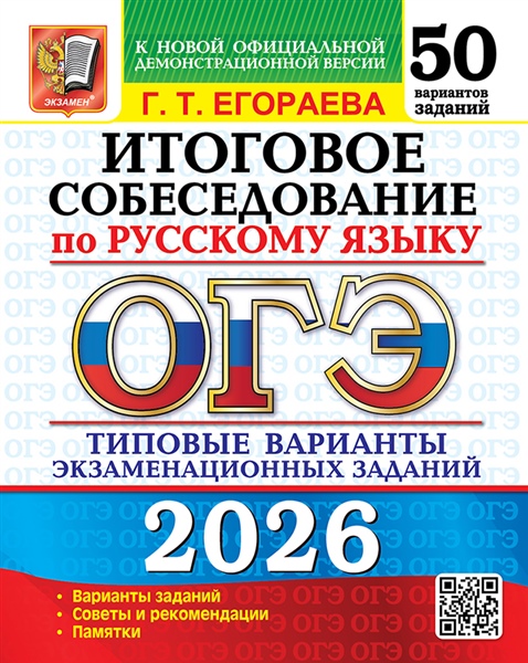 Егораева Г.Т. ОГЭ 2026. 50 ТВЭЗ. РУССКИЙ ЯЗЫК. ИТОГОВОЕ СОБЕСЕДОВАНИЕ. 50 ВАРИАНТОВ. ТИПОВЫЕ ВАРИАНТЫ ЭКЗАМЕНАЦИОН