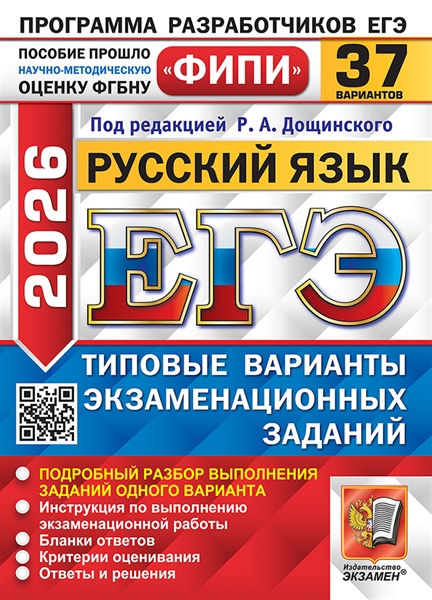 Под ред. Дощинского Р.А. ЕГЭ ФИПИ 2026. 37 ТВЭЗ. РУССКИЙ ЯЗЫК. 37 ВАРИАНТОВ. ТИПОВЫЕ ВАРИАНТЫ ЭКЗАМЕНАЦИОННЫХ ЗАДАНИЙ
