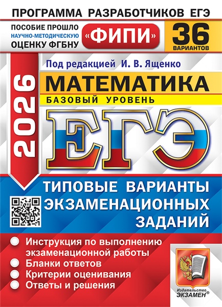Под ред. Ященко И.В. ЕГЭ ФИПИ 2026. 36 ТВЭЗ. МАТЕМАТИКА. БАЗОВЫЙ УРОВЕНЬ. 36 ВАРИАНТОВ. ТИПОВЫЕ ВАРИАНТЫ ЭКЗАМЕНАЦИОННЫХ