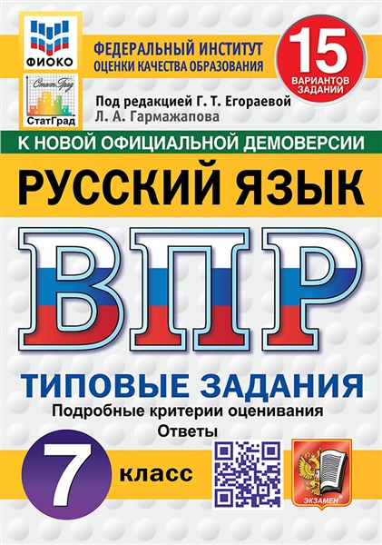 ВПР Русский язык 7 класс. Типовые задания. 15 вариантов. ФИОКО СТАТГРАД